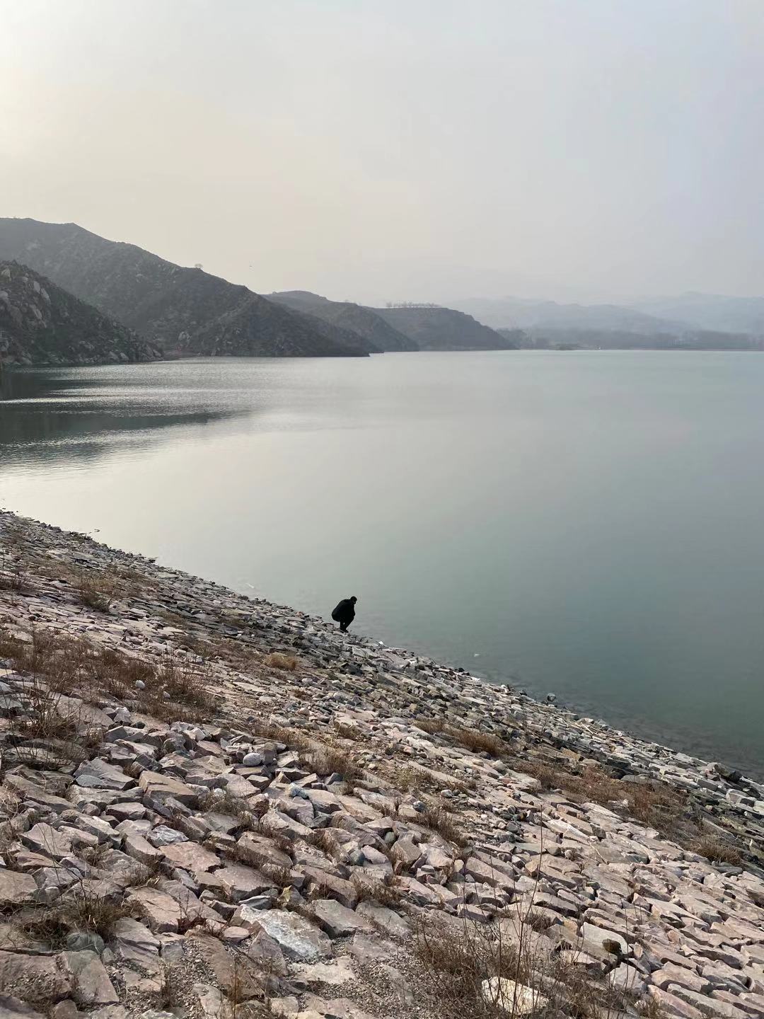 再往南行驶不远,看见一个小村庄叫下庄村,旁边就能看见波光粼粼、一望无际的水面,这就是原平闻名的观上水库。